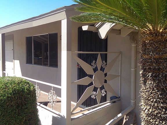 Traditional sale! Located in Sundale Country Club and completely move-in ready and all polished up. The backyard is open to the golf course! This home has great curb appeal with a front sitting porch! You'll find fresh two toned paint throughout! There is new wood laminate flooring in the common areas and brand new carpet in the bedrooms. The kitchen has attractive countertops and built-in appliances. The living room is spacious and there is a formal dining room and enclosed patio. The bedrooms have ceiling fans and the master bedroom has its own private bathroom. Both the front and backyard have new drought resistant landscaping. The backyard has a large gazebo sitting space large enough to entertain. **55 years plus community. One resident will be required to be 55 or older.