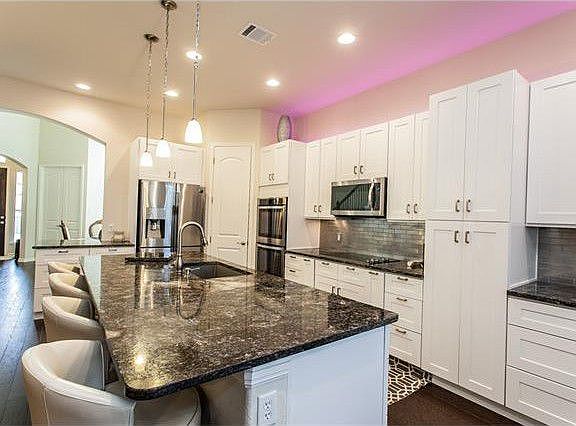 Beautiful home w/ open floor plan located in the desirable Reserve at Brushy Creek. Features include high ceilings, wood flooring & oversized bedrooms. Fully remodeled upgraded kitchen with extra cabinet space and drawers. Large extended island with premium granite. Breakfast area with built in bench & storage. Open family room with custom built entertainment center w/ granite top. Master suite w/ 2 separate large walk-in closets that have floor to ceiling custom storage. Walk in shower with double heads and bench. Upgrades better than a new home ! You'll love the extremely desirable location, highly rated schools & proximity to greenbelt/hike/bike trails. Standard commission to buyer's agent. To arrange showings please call 405-388-0386