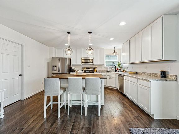 room. Upgraded open kitchen with 42” cabinetry, a large center island with butcher block top, a large