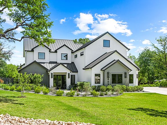 Welcome home to your expansive private compound sprawling across a full acre at 809 Cypress Grove built by custom home builder, Paradisa. Nestled six homes up from Lake Austin towards the back of Steiner Ranch in the gated community of McCormick Ranch, this estate offers easy access to UT Golf Club, Lake Austin boat launch, and highly accredited Leander ISD schools. The picturesque landscape is framed by the majestic oaks and lush vegetation fed by an on-site well. As you enter the four-bedroom home, gather around the spacious chef's kitchen equipped with luxury Thermador appliances. Enjoy a cold beverage while utilizing the double ice makers or savor a glass of wine from the elegant bar including a climate-controlled wine refrigerator. Spacious living at its finest offers an ample family sitting area surrounding a contemporary gas fireplace. Be sure to take in the beautiful outdoor living space through the sliding glass door to enjoy entertaining areas that overlook the outdoor kitchen, swimming pool and spa. Relax in the owner's suite with a soaking tub, oversized shower, two walk-in closets, separate vanities, and private access to outdoor living. Guests enjoy their own quarters on the main level of the home including a covered patio, full en-suite bath, and sitting area. The second floor offers a multi-use game room or sitting room and powder bath as well as an oversized media room with a projector, screen, and media components. Enjoy two bedrooms large enough for king-size beds, each with their own full bathrooms. Additional improvements and upgrades in the home include: HVAC system, luxuriously designed powder bath adjacent the private study, and Energy efficient/UV Protection window tint throughout the home.