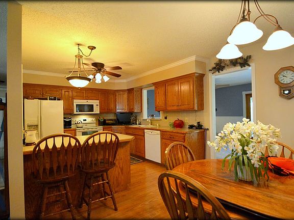 Updated ranch home with Custom Woods Kitchen and Pella windows. Main floor family room with brick fireplace, gas insert and covered deck leading off to stamped concrete patio. Large master bedroom with bath and walkin closet plus private deck. Partial basement finished with second family room.