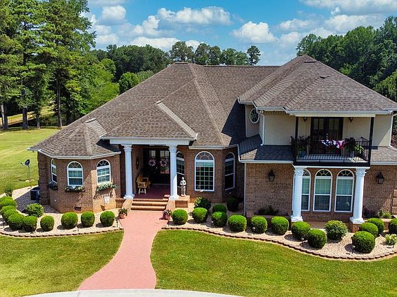 Unique home designed with exquisite details including stunning crown molding, elegant chandeliers, oak hardwood floors, and ceramic tile throughout. The heart of this home is the kitchen, a culinary dream featuring double ovens, a new gas cooktop, ideal for family gatherings. Abundant cabinetry, a walk-in pantry, a sprawling island, and a magnificent chandelier make this kitchen exceptional. The spacious layout includes large gathering rooms, a first-floor master wing w/ an oversized shower with steam and spray systems, as well as a cozy gas fireplace. A first-floor guest suite w/ a full bath. Upstairs, discover a secondary master suite alongside two extra bedrooms. Step outside to enjoy the covered back porch w/ a half bath, offering picturesque views of the saltwater pool and expansive scenery. This home is suited for entertaining family and friends. Too many features, full highlights upon request. Mins from Upper Bear Lake/ Bankhead Forest. Within two hrs B'ham, Tupelo, Tuscaloosa.