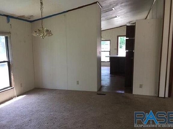 This manufactured home located in rural Dell Rapids, features a spacious living/dining areas, kitchen, 3 bedrooms, 2 baths, and garage. Needs updates & repairs, but there are possibilities. Bring your decorating ideas, and start planning your move-in!