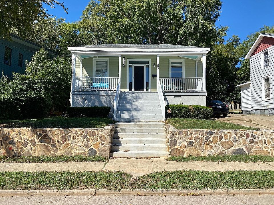 Charming cottage w/huge front porch. Get into this HOT yet eclectic area for about 100K less than new construction. Move in ready home was fully updated in 2009 (wiring, plumbing & many other systems upgraded). Retains the charm w/lovely bamboo floors & high ceilings, but offering a modern kitchen, hookups for w/d. Two closets in each of the 3 BRs (or optional den). There's even a true hobby area for your own retro speakeasy/beer brewing. Back deck overlooks large fenced yard. Walk to all of downtown.