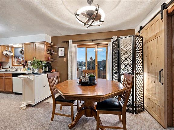 Listed by Kathy Citrowske (507) 530-2665 or Dorcie Dardis (605) 645-1234, Dorcie Real Estate LLC. This well cared for home located in a quiet cul-de-sac in Spearfish has several updates. Terraced backyard gardens have an easy to maintain drip water system with sprinklers in the front yard. Open living room leads to a bright dining area and efficient kitchen. From the dining room you can step out onto the large deck that is low maintenance. Walkout basement from the large family room along with an addition bedroom and newly remodeled bath in the basement. Convenient laundry is next to the kitchen on the main level. Additional room with French doors can easily be used as an office. A new energy efficient gas furnace has been added with a heat pump.