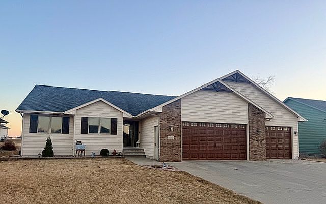 Call or text Michelle at 605-261-7125 for a private showing! New shingles put on TODAY! Discover the perfect blend of style and comfort in this stunning ranch-style home, nestled in a very quiet neighborhood. This beautiful 5-bedroom, 3-bath home offers a spacious and versatile layout perfect for families or for those who love to entertain. The main floor features an open, expansive living room, beautiful, updated kitchen, large sunroom with a fireplace, main floor laundry, and the master bedroom, with walk-in-closet and a brand-new walk-in tile shower. The main level also includes an office (can be a bedroom), full bathroom with tub/shower and another bedroom. The lower level includes a large family room with another gas fireplace, two large bedrooms, a full bathroom, an exercise room, and a storage/utility room. The oversized three stall garage has a heater, built in wood storage shelves all through out, and beautiful, updated walnut colored garage doors. Outside, enjoy low maintenance landscaping and a well taken care of yard, equipped with a large 10x12 garden shed for all your outdoor storage needs. The backyard is the perfect size for a swing set or trampoline to keep the kids entertained year-round. This move in ready home is located in a quiet cul-de-sac, in a highly sought after neighborhood, in a beautiful small town! The town of parks! This home is ready to impress, come check it out!