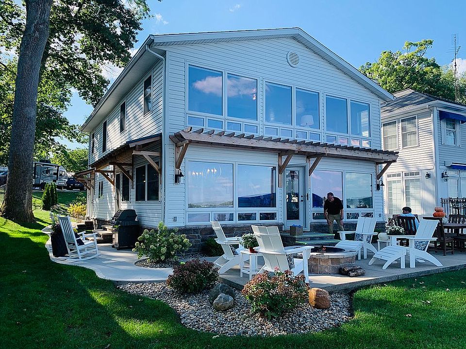 2021 Parade Homes House. Extensive remodel in 2021. Custom Built cottage with modern updates and charm. Year-round hardwood floor lakefront home with new 6-foot wide seawall. Turn key! All new furnishings, decor, 2017 Trifecta pontoon with Mercury 115hp motor, and Shoremaster 4k boat lift included. Also, all outdoor Polywood furniture, Weber Gas Grill, Traeger Smoker, two Kayaks, Honda push mower, two snowblowers, yard, and garden equipment included. Added main floor master suite with custom walk-in shower and White Aspen wood Inferred sauna. Added main floor laundry room. Added 5th bedroom. New second-floor family /entertainment room with TV wall, wet bar, and bunk room has its own full bath with double vanities. New roof. Cedar pergolas over lakefront widows and upper garage as well as cedar and metal roof overhangs on lower garage and all entry doors to the house. Several new windows. All new custom kitchen with granite tops, brick backsplash, and Kitchen Aid appliances. New Maytag ex-large washer/dryer. New whole house tankless water heater. Updated all bathrooms with new fixtures and tile floors. New entry doors and garage doors. New trim for windows and doors. New Indoor/Outdoor lighting and fixtures. Added exercise room/yoga studio. New AC/Furnace. Added gas furnace to detached garage. Added heated driveway. All new concrete driveway, sidewalk, and entry steps. Added gas log lighted firepit. Added stone wainscoting to house, steps, and firepit with limestone caps for steps and firepit. Updated foundation of the house and detached garage. Added vapor barrier and spray foam insulation to crawl space and detached garage. New epoxy garage floor. New outdoor maintenance-free staircase to upper garage. All new landscaping and sod. Home completely taken down to studs in 2000 with additional foundation added and then rebuilt from the ground up by the previous owner. This Year-round lake house is located In Willis Park, one of the most sought-after locations on North Webster Lake. Sandy bottom lakefront to enjoy the water. Easy walk to town for restaurants, supermarket, community center, and library. The fourth-largest natural lake in Indiana has great fishing and all water sports. Also, has a lakefront restaurant open year-round for breakfast, lunch, and dinner, a marina, and a boat gas station. Enjoy stunning views of the entire lake from nearly every window and start your days with spectacular sunrises. Sit on the Lake Front patio and watch the Dixie boat go by. Open concept living, perfect for entertaining and family gatherings. Kitchen, 10-place setting dining, and living areas capture all the water views from the wall of lakeside windows. Beautiful Wood beams and a river rock gas fireplace are there for you to enjoy on cold winter days. Hardwood floors throughout. An upper-level family/entertainment room with a large TV wall and wet bar, as well as a wall of windows, provides amazing views provide plenty of extra space for entertaining. As you walk up to the second floor you are struck by the vaulted 30ft. skylight room that brings in lots of natural light into the home. The beauty and character of this home mixing old and new are amazing. This home has 5 bedrooms and 3.5 bathrooms as well as an exercise room/yoga studio over the garage. House sleeps 14 in beds. There are 2 garages(both oversized) included with this property for all your storage needs. The detached garage is also 100 years old with original wood floor in the upper garage with new engineered support beams to allow parking in both levels. Invite your family and friends, plenty of parking in the 10 spots, and additional parking for 6 vehicles in the off-street easement behind the upper garage. Come sit back and enjoy this move-in, turn-key lakehouse!