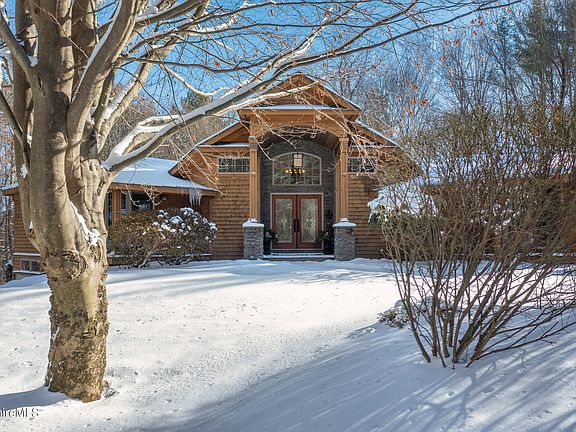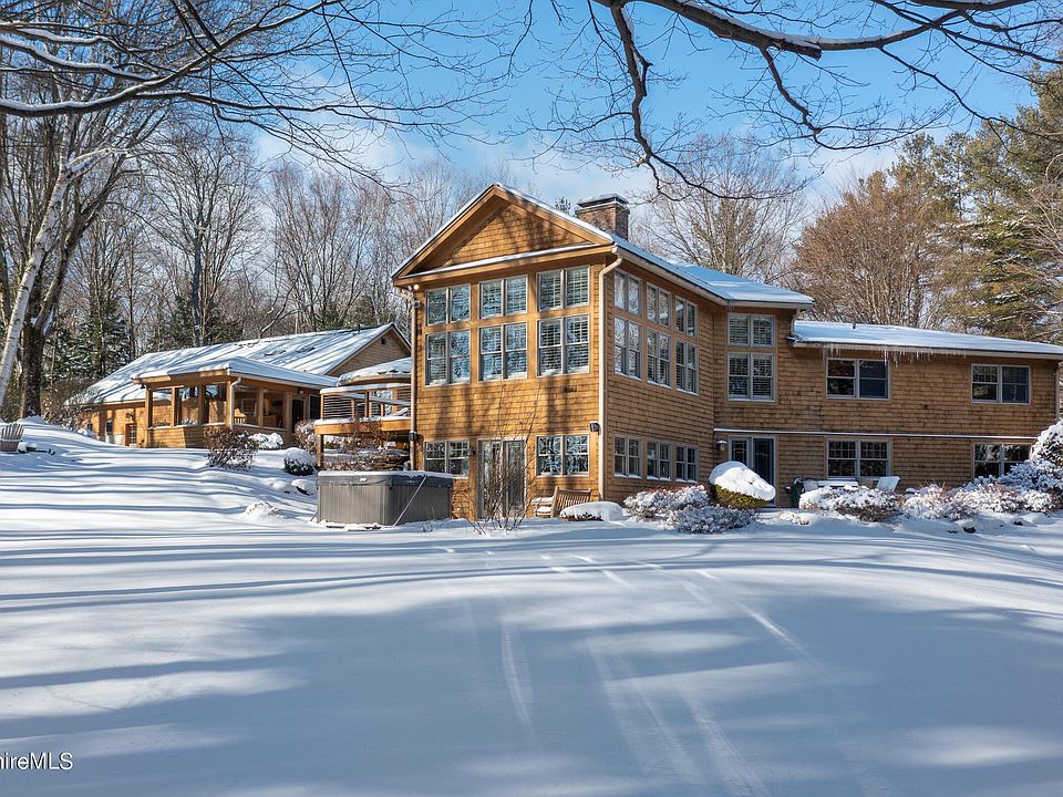 Escape to this distinguished Berkshire mountain ranch style home atop a hillside on 4.27 private acres. Take in the wintry views of October Mountain and be minutes to downtown Lenox. Uniquely designed and impeccably finished with custom quality features of cedar, cherry, stone and a metal roof that complement the natural wooded surroundings. Be welcomed by a dramatic stone entry and experience a grand entrance with soaring vaulted ceilings, curved archways and a magnificent floor to ceiling stone fireplace that greets you. Free standing and open to the family room see panoramic walls of windows inviting the outdoors in. Spacious formal dining open to living spaces and the new IPE deck for ease and flow inside and out. Gather around the leather finish granite island in the gourmet, Kraftmaid, two-tone cabinet kitchen outfitted with top of the line appliances Viking, Wolf, Subzero and a Miele coffee station. Meander outdoors to the Goshen stone patio and firepit or snuggle in the three season mahogany floored sunroom. Enjoy the thoughtful design offering the ease of one level living with a split bedroom layout and two primary suites to choose from. The north wing offers an ensuite bedroom plus an office and full bath with steam shower. The south wing spotlights a kingsize bedroom, walk-in closet and whirlpool bath with sunset views from it's own deck. Additional accommodations are created in the second floor bonus-bedroom ensuite for lodging overflow or an art studio hobby space. The lower level calls you to the Nascar family room or the home theatre media room for more fun and games. Potential in-law living quarters on this level with two bedrooms and a full bath and beverage bar. They may saunter outdoors to patio dining or an evening dip in the hot tub among the stars and snowflakes. Let's mention the third two-story garage for sports saloon style space equipped with height, heat, workbenches, steel i-beam and basket ball hoop as well as Summer sleeping-storage loft for camp-style memories. Five-zoned heat and air conditioning, alarm, generator and so much more make this estate a Berkshire dream come true. Possibilities include creating a compound with the additional building lot included. If you seek peace and solitude while only minutes to the music of Tanglewood, the charm of downtown Lenox and the art and culture of Berkshires, your home awaits you.