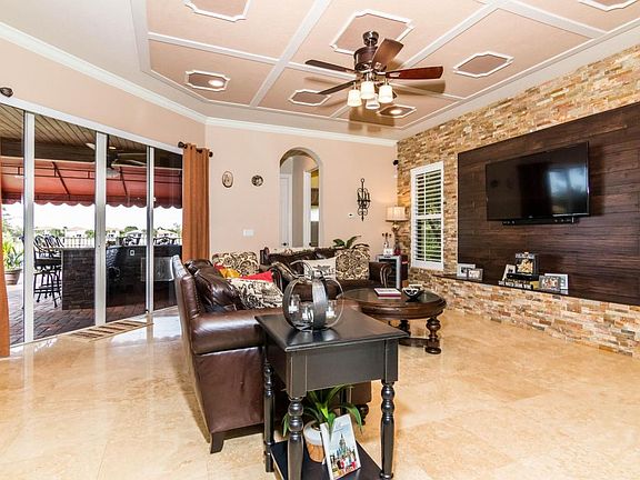 Exquisite estate home shows better than a model. From the moment you enter this palatial home you will be sold. The killer lakefront views are the best in this community!Saltwater system heated pool/spa LED light and outdoor custom kitchen/bar with awning overhang makes this your own tropical oasis. Dramatic floor to ceiling windows, gorgeous saturnia marble flooring in living areas, double staircase w/wrought iron, upstairs loft/living area w/bridge overlooking living room,coffered ceiling in dining room, crown molding thru out, custom flagstone wall in family room, 2 bedrooms/office on 1st floor, custom molding accent trim thru out, huge walk in pantry with custom shelving, gourmet kitchen, granite,extra storage, spacious laundry room,large master bath. Manned gated community