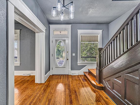 Remodeled and ready to enjoy! This amazing 2 story home features 5 bedrooms, 2 1/2 bathrooms, beautiful hardwood floors, new kitchen cabinetry, counters, appliances, new HVAC, new replacement windows, new vinyl siding and gutters, new patio area out back, so much! Freshly painted, new lighting, this home is full of charm and character, covered rocking chair front porch, huge walk in closets, even a primary bedroom on the entry level! Detached garage out back! If you are looking for a beautiful spacious home, come view this one today!