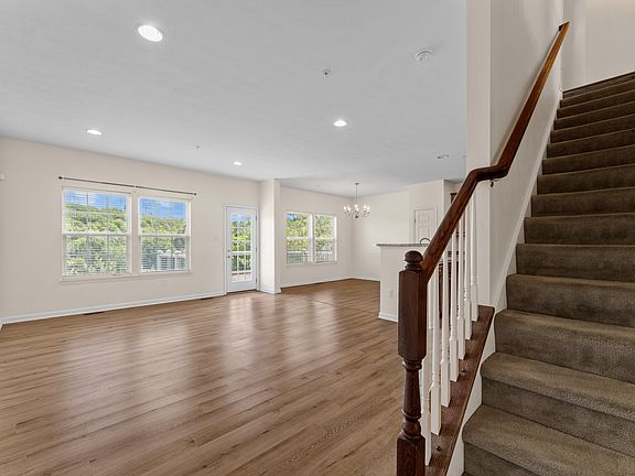 Better than new! This SHARP end unit townhome in the Village of Pine offers many upgrades: freshly painted, upgraded wood cabinets, LVP hardwood floors throughout the entire home, private rear deck, finished lower level gameroom, plus a 4th bedroom and full bath. This floor plan offers an open-concept living space on the first floor with a great room for dining and entertaining. The kitchen features a breakfast bar, and white subway tile backsplash with plenty of cabinet and counter space. Upstairs, the large owner's suite offers a walk-in closet & an upgraded bath with tiled shower, dual vanities, and soaking tub. There are 2 spacious bedrooms, a second hall bath, & laundry room as well. The finished lower level offers a gameroom space as well as a guest suite/home office and full bath. Outside, you'll enjoy rolling views from the deck. This townhome offers a community with Market District, shopping, dining, and Oxford Athletic Club, multiple parks, and playgrounds outside your door. Pets considered based on size and breed