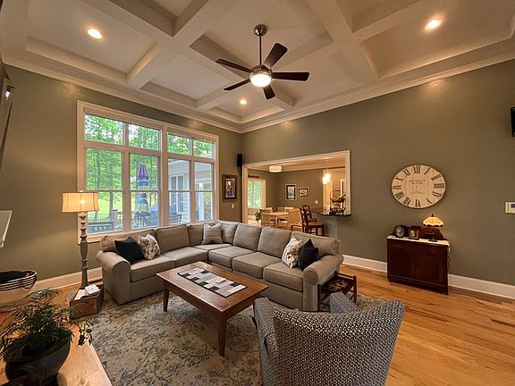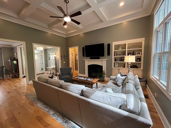 5 bedroom/3.5 baths. Enjoy stunning views of Stonehaven #13. Living room boasts 12' coffered ceiling, gas fireplace & large windows with plantation shutters to enjoy the view. Kitchen has quartz counter-tops, gas range, ss appliances, two pantries, soft close custom cabinets, backsplash & opens to the breakfast & sunroom. Spacious master has a trey ceiling, walk-in closet & large tiled shower.