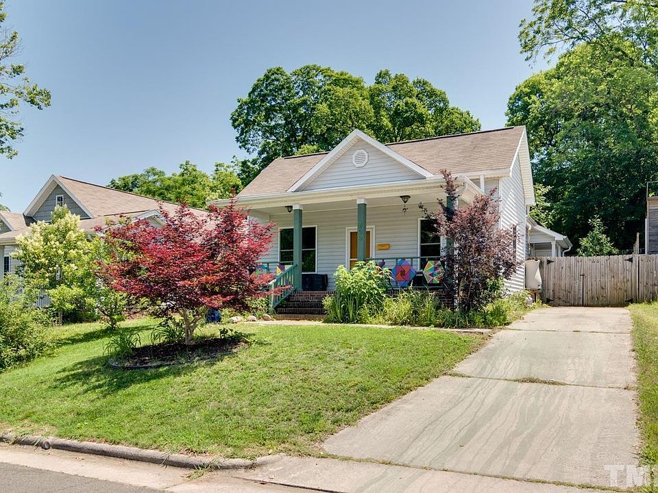 Downtown Durham Bungalow has the style + scale of an old home & the comfort + amenities of a new home. Covered Front Porch. OPEN living space w/ window into Kitchen. 3 Bedrooms, 2 Bathrooms. Efficient: Solar panels added in 2020-> $0 energy bill 10 of 12 months! Private, fenced rear garden area with 12' X 12' trellised deck & lovely perennials + plantings. 80% Area Median Income (AMI) + Owner Occupancy Requirement until 9/2027. Close to the action- in the West End- just 3 blocks from the Food Co-op.