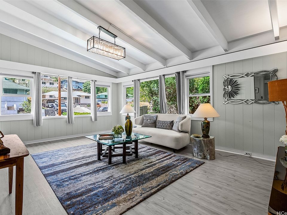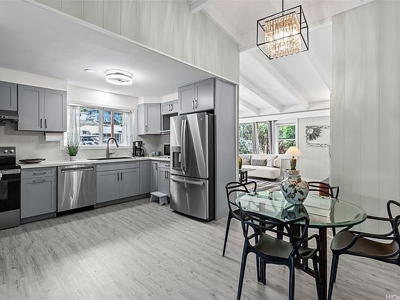 One level house on a 8,446 Sq. Ft level lot. No stairs to climb. $250k in upgrades and Move-in ready! Located in the highly sought-after Aina Haina, this beautifully renovated home offers the perfect blend of island living and everyday convenience. Fresh new paint on the interior redwood walls. New fence on the property, new luxury vinyl floors, new kitchen, new bathrooms with quartz countertops, new cabinetry and a lovely backsplash. The 1st bath has a modern flare including tile flooring, dual vanities, stylish light fixtures, and a tiled shower with glass sliding doors. The studio just off the kitchen and dining area is perfect for entertaining guests or creating your own home office. It comes with its own wet bar, brand new bathroom, and has a separate entrance. House isn't in a flood zone. Flood insurance is not required. A front yard and a huge backyard oasis that has an avocado & Lychee tree. Perfect for those who love to garden. The backyard has also been encased by beautiful vinyl fencing and a gated entrance on each side of the home. Spacious 2-car garage with new washer & dryer. Do not miss this opportunity to call Aina Haina your new neighborhood!