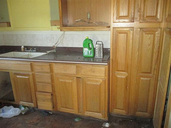 This could be a nice home. Some nice character with wood trim and pan ceilings in the house. Bathrooms are not finished. No heat and air. Old garage has been torn down leaving a cement slab. Roof looks good from the street. Nice cement porch. Some vinyl siding. Newer kitchen cabinets and counter tops. Make this your next project.Lot to the south of the house sells with the house.