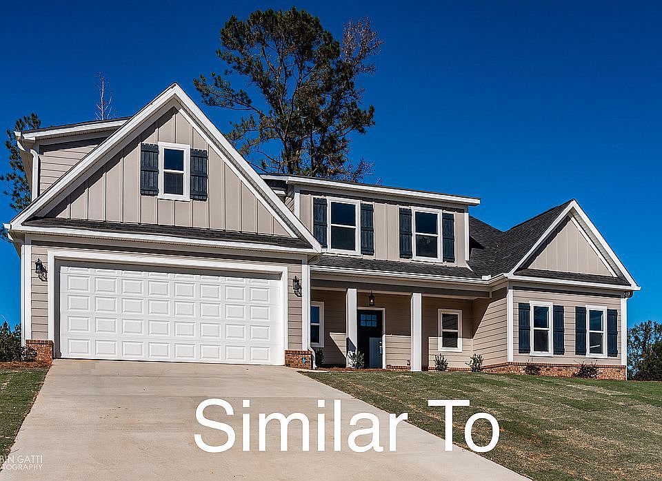 Fantastic new plan featuring 4 bedroom 2 1/2 baths, main level study plus an upstairs den. Modern cabinets and custom walk in closets throughout the home. Open concept with wide entertaining Island that over looks large great room with gas log fireplace. The owner's suite features large walk in closet, dual vanity, soaking tub with separate walk in tile shower. Enter from garage into mudroom with extra storage and walk in laundry. Upstairs houses 3 bedrooms and 1 bath. Enjoy relaxing on the covered patio, or entertaining for your game day gatherings. Year round enjoyment in this gated subdivision featuring pool, clubhouse, playground, basketball court and fishing from the covered dock in the stocked pond.