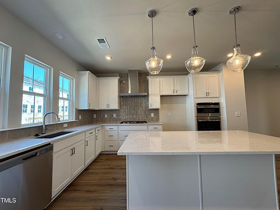 Move in Ready! Welcome Home to the NOLA! Spacious 4 BR/3.5 Bath townhome in The Mews in Holding Village. First floor features a guest suite with full bath and built in drop zone. Oak tread staircase leads to the 2nd floor. Spacious great room, kitchen & dining area. The kitchen includes gourmet appliances, large island, pendent lights, white & granite counters with windows that overlook the cozy balcony. EVP throughout the second floor. The third floor showcases the primary suite with tiled shower and large walk in closet. Two additional bedrooms, full bathroom, and laundry room. Attached 2 car garage. 9ft ceilings on all floors. Other features include: tankless gas water heater, Ring doorbell, Schlage Front Door Lock, electric car charging outlet, whole house surge protector. The community features a 15 acre lake, pool, clubhouse, parks, and trails!