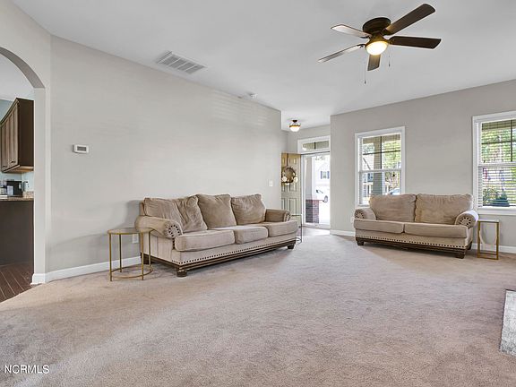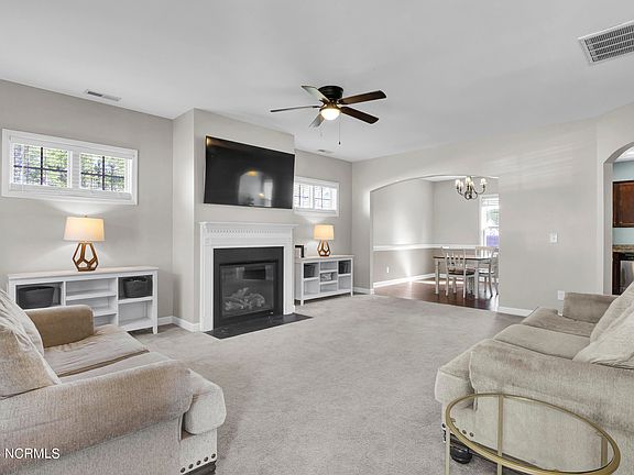 3% ASSUMABLE VA LOAN FOR QUALIFIED BUYERS! Property back on market due to buyer's financing. Washer and dryer included! 809 Iroquois Court is a beautifully detailed large 2400 sqft. home with 4 large bedrooms and 2.5 bathrooms. Located on a cul de sac, this .45 acre lot offers a huge back yard that is fully fenced with a basketball court! This unique floorplan flows well with good lines of sight from room to room. The large kitchen with huge island has plenty of granite countertop surface area to spread out. Upstairs all 4 bedrooms have high ceilings increasing volume and scale of the bedrooms. An upstairs open loft space would work well as a sitting or study area. Rounding out the upstairs, the massive master suite measures in at 15'x20' with a huge walk in closet, while the master bathroom is appointed with dual vanities, soaking tub, separate shower and private water closet. Village at Folkstone is conveniently located with easy access to Jacksonville and Wilmington. Whether looking to retire and enjoy the incredible Coastal NC weather or relocating here for work, you will also appreciate being minutes from the beach, boating, golf course, shopping or work. Come enjoy the quality of life that Coastal Carolina has to offer!