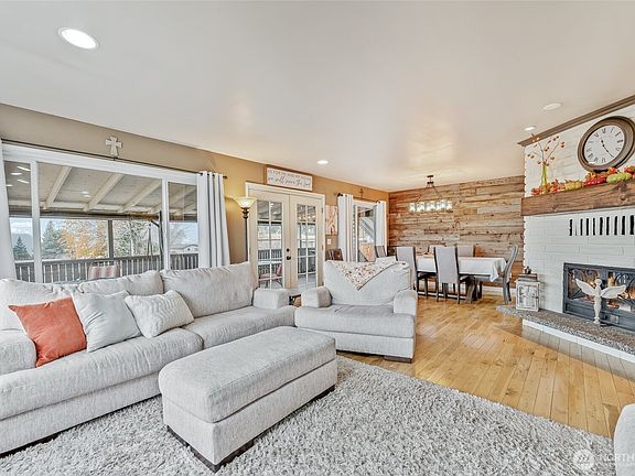 Discover space and comfort in this East Wenatchee home. With 6 bedrooms, 3 bathrooms, and 2,868 sq ft of living space, there’s room for everyone. The main living area features an open-concept with hardwood floors, a walk-in pantry, and a double-sided fireplace. Also on this level are two bedrooms and two bathrooms, including the primary suite with its own private patio. The lower level provides flexibility with a second living area and fireplace, additional bedrooms, a bathroom, a large laundry room, and direct access to the new fully fenced yard. Outdoor living shines here, relax on the expansive covered deck or enjoy the covered patio below. Centrally located near local schools, this home offers both comfort and convenience.