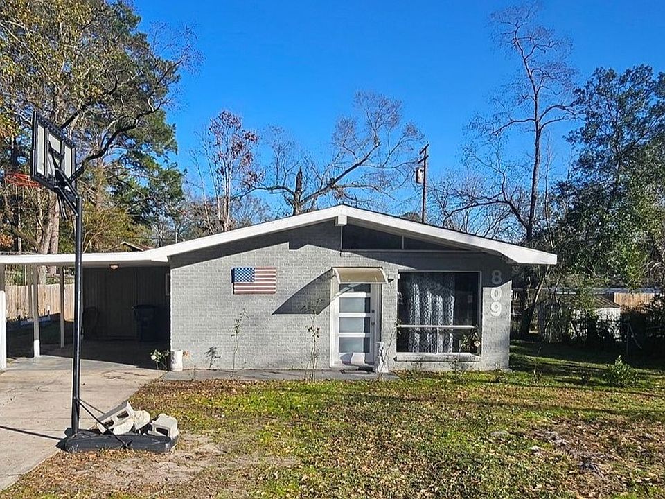 This brick 3-bedroom, 2-bathroom home offers 1,200 square feet of living space with an open floor plan and stylish laminate flooring throughout. The cozy living room, featuring vaulted ceilings and an electric fireplace, connects with the dining area, which provides convenient access to the fenced backyard. The adjoining kitchen is fully equipped with essential appliances, including a stove, oven/range, refrigerator, and dishwasher, making meal prep a breeze. The primary bedroom is complete with vaulted ceilings, a ceiling fan, laminate wood flooring and a sliding glass door that opens to the backyard. The ensuite bathroom features a spa-like tiled shower, a large vanity, and distinctive lighting. Two secondary bedrooms offer spacious closets and matching laminate wood flooring. The secondary bathroom includes a tub/shower combo and an large vanity, offering both style and functionality. Additional features include a fully fenced backyard, a single carport, and ample driveway parking. Located just minutes from downtown, near the public library, and only 15mins from Fort Johnson.