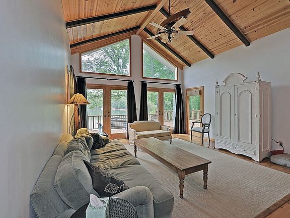 Lake Splendor... Total rehab from the studs Out. This 3BR/2BA is a beauty. Ranch living with approx 1500 sq ft, Australian Cypress floors throughout. All new Hickory Custom Kitchen w/ stainless appliances and Tumbled Marble floors, tops, and splash. Tile surround tubs in baths. Vaulted Ceiling in DR & LR with T&G and Beams. Masonry fplc w/ gas logs and a wood stove. 4 sets of Double French Doors access the back Entertaining decks that overlook the lake. 132Ft of lake frontage. New dock permit available but has an old dock that stays (not in great shape), Timber - pole porch. 1 car garage.Stack Block retaining wall along the Lake. Great water! Over $100k in improvements. Cedar Shake Exterior. Storage Building.