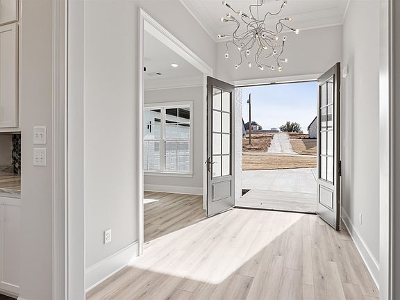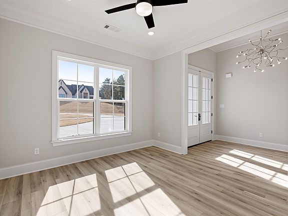Double door entry, formal dining rm, hardwd throughout, ventless gas frplc, built-in shelving, high ceilings, ktchn has gas cooking, double ovens, 12 ft island, large eat-in area, 4th bdrm/office has door to oversized covered patio w/a doggie door & a private bathrm for 4 legged friends (see pictures) w/plumbing configured to easily convert back to regular bathroom later, primary bedrm has coffered ceiling, luxury bathrm, & large walk-in, separate laundry rm, hall tree, bonus rm up,