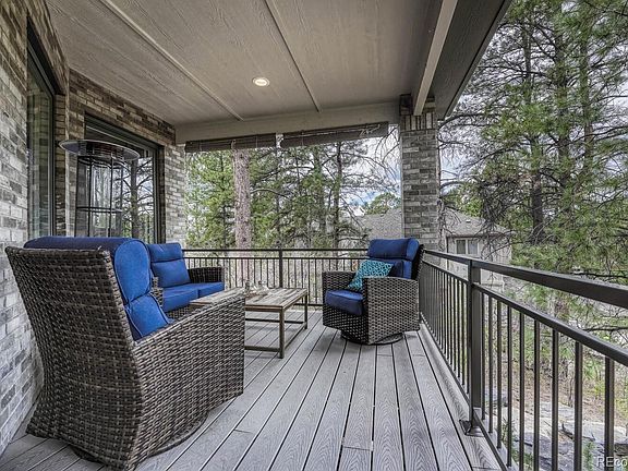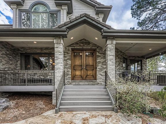 A must-see Castle Pines Village home nestled on a secluded cul-de-sac amidst stunning landscaping, privacy, and an exceptional outdoor living experience. Enjoy the community amenities, including pools, tennis and pickleball courts, and 13 miles of exclusive walking trails all within a gated, manned security community for extra peace of mind. Enter to find a grand main floor featuring a sweeping staircase, elegant living and dining areas, a spacious family room with a see-through fireplace, a study, and a sizable laundry room. The gourmet kitchen is the heart of the home, equipped with slab counters, high-end appliances, and a large pantry, perfect for entertaining. Upstairs, the master suite offers luxurious relaxation with a five-piece bath, an oversized walk-in closet, and heated floors in the master bath. Three additional bedrooms and two full baths; one including a steam shower. The lower level is an entertainment haven with a kitchen/wet bar, game room, theater, custom 400+ bottle wine cellar, private guest room, and private exercise area that could be used for yoga/pilates/barre. A three-car garage with a heated workshop providing ample space for storage and hobbies. Step outside to a private treedoasis with a gas bbq/island area, three custom firepits, a soothing water feature, and a hot tub. Enjoy the mountain views on your walks, including Pike’s Peak and the open valley views. Enjoy nature and stare at the stars, while living just 20 minutes from the city in the prestigious Castle Pines Village. Welcome to your mountain sanctuary!