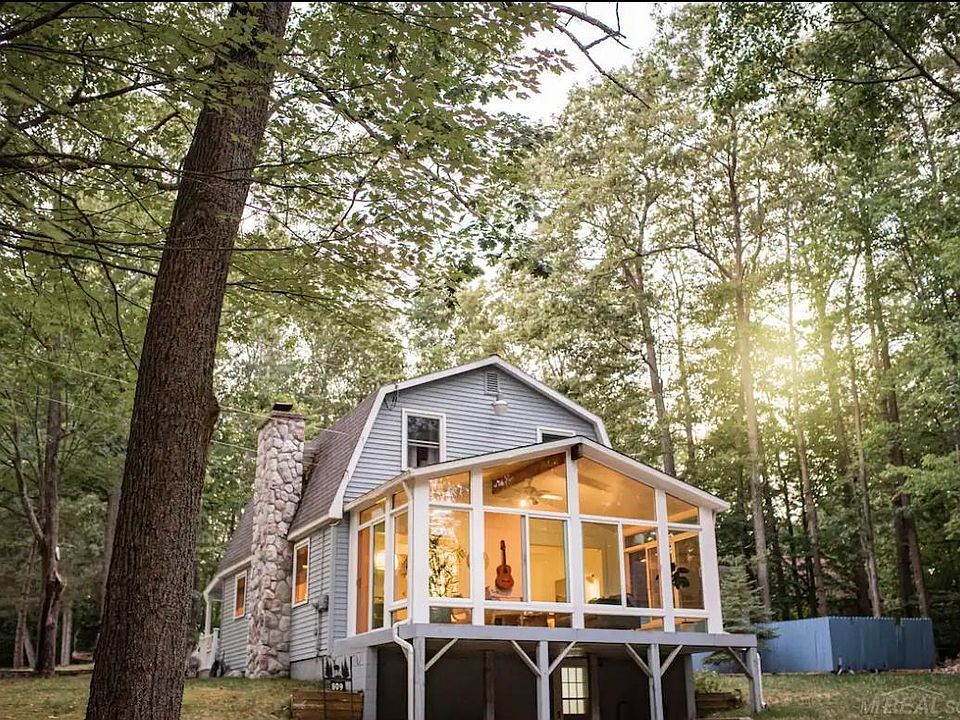 Beautiful two bedroom cottage, two full bath renovated in 2022. Off the beaten path, surrounded by tall trees and just 1.5 miles from crystal clear Higgins Lake. Amazing views of the outdoors from the 20x12 floor to ceiling glass room. Property also features a 48x32 two story pole barn and a shed to store anything you can think of. Additional room in the basement of home can be used for bunk beds or office. Walkout basement. New water heater in 2022. Home will be sold as is, fully furnished with a couple exceptions. Forced air (propane), wood burning stove, central AC, septic tank.