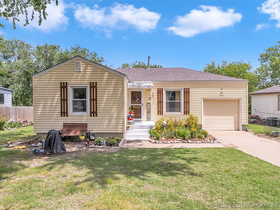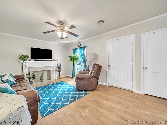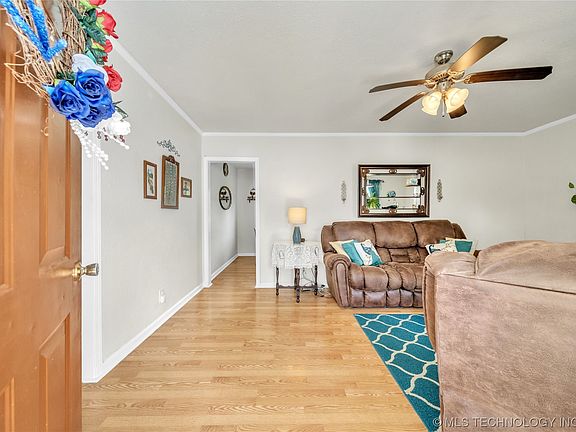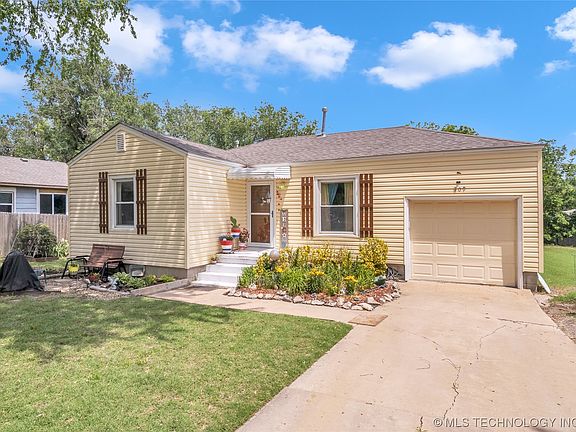 Adorable bungalow in historic Collinsville neighborhood. Solid surface flooring throughout and vinyl windows. Newer Storm shelter, garage door, and 2 storage sheds, one with an additional covered carport with the electrical and RV electric hookup. Alley access behind allows for trailer or camper access from the rear of the property. Additional insulation was added to the attic and crawl space along with new vinyl siding.