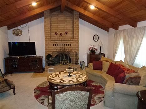 Custom Spanish style home with vaulted beamed ceilings & fireplace wall. Formal living room with picture window. Large open kitchen with upgraded stainless steel appliances.Enjoy the enclosed patio that expands your living space & has a wonderful view of the rear yard, perfect for morning coffee or entertaining.