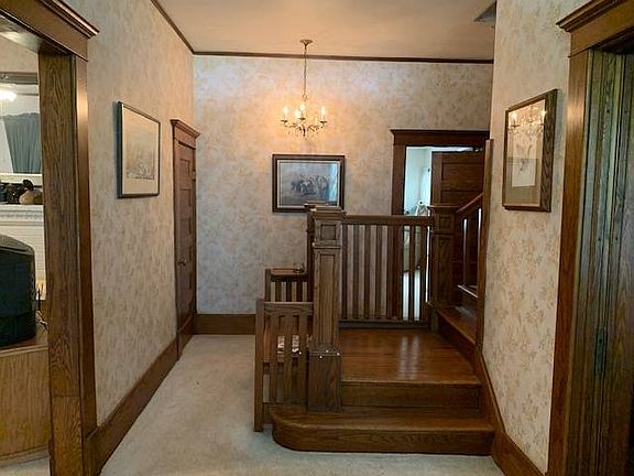 This beautiful two story home features 4 Bedrooms Upstairs along with 1 non-confirming bedroom on the main floor. This home has been well maintained and has all original woodwork throughout! Enjoy the quiet small town living with the large front porch or the deck off the second story bedroom!