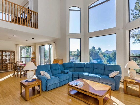 Come live the dream of Arizona Mountain Living! This spectacular horse property is located on 4.49 acres bordering the national forest with breathtaking views in every direction. Homes in this area, especially with this type of acreage rarely come on the market. The 4200 +/- sqft custom home has an open floor plan including an impressive Great Room with vaulted ceiling and large windows to partake in the panoramic views, a generous kitchen with eat-in-kitchen and plenty of space to entertain, a dining area with breathtaking mountain views and a master suite on the main level with wood floors and an en suite bath with dual vanities . Upstairs is a loft with living area and three guest suites that share a bath and two balcony areas to enjoy the outdoors and breathtaking views? Downstairs is a flex room which could be used as an art studio, hobby room, exercise room or many other purposes as well as a large workshop area. Outside, enjoy the tranquility and privacy the acreage provides with outdoor living abound with endless mountain views, picturesque sunrises and sunsets and immediate access to the national forest right from the property. The very useable acreage allows for RV parking, horse facilities, additional garage space, plus much, much more! The opportunity for this property is limitless, come and see it now!