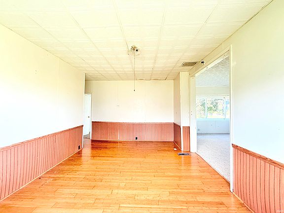 Spacious 4-bedroom home on a corner lot featuring a covered east-facing porch and an enclosed porch on the west end. Inside, a welcoming entryway leads to a comfortable living room and a versatile center room that can serve as a secondary living area or a large dining room. The kitchen provides abundant cabinet space and is large enough to accommodate a full dining table. Additional highlights include a detached two-car garage, a gas water heater that is approximately four years old, and a crawlspace with a vapor barrier and interior foam insulation around the foundation. Being sold "AS IS"