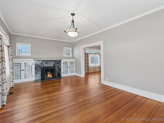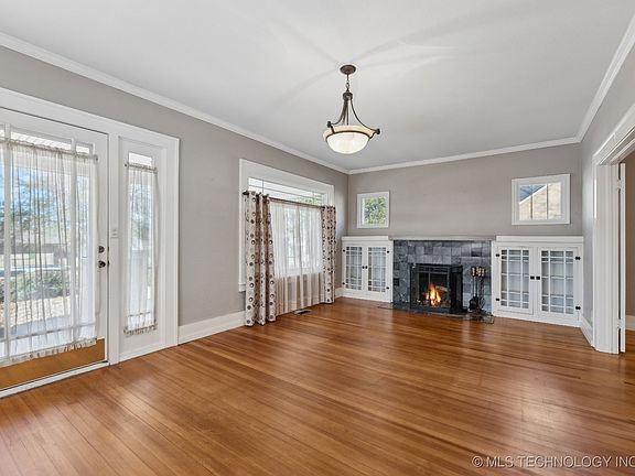 Step inside this stunning Craftsman-style home from the large wrap-around front porch, and you will feel at home as soon as you walk through the front door. High ceilings and beautiful original hardwood floors run throughout, adding warmth and character. Built-in cabinets and detailed original trim work showcase the craftsmanship that defines this timeless style. The formal dining room is conveniently located adjacent to the generously sized kitchen, which features a pantry, plenty of cabinets, and ample counter space, making it highly functional. A sunroom at the back of the house provides a peaceful retreat, with natural light pouring in from every angle. This home offers a layout with ample room for family living, while still retaining the unique
