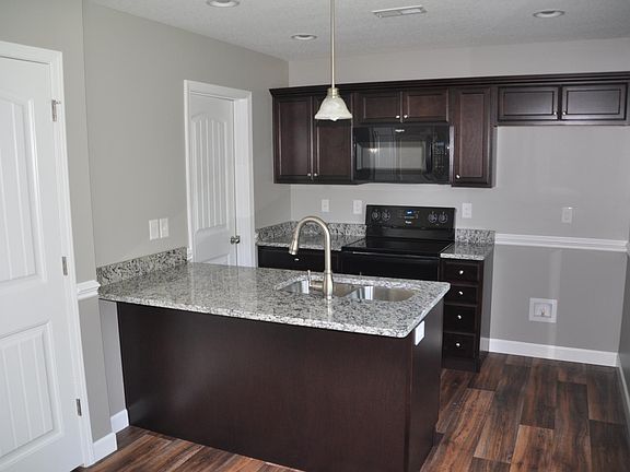 Heat pump, central air, range, microwave, disposal, washer/dryer connections, carpet & LVT flooring, 1 car garage.