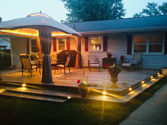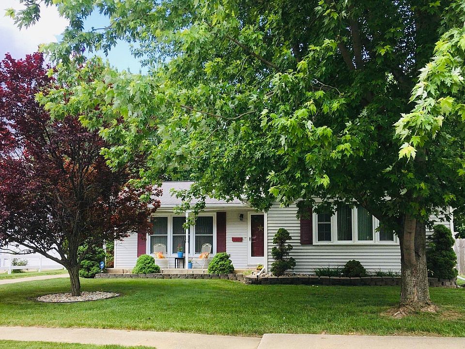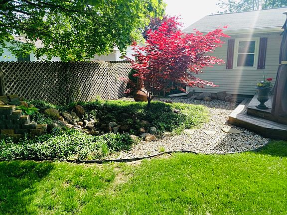 Updated and well kept Ranch style home located in a quiet neighborhood that sits on a large and private fenced in lot. Large deck with inset lighting. 2.5 car detached garage with attic and full length lean-to for storage. Private basketball court, Coy pond and fire pit. 3 bedrooms, 1 and 1/2 bath with ceramic tub/shower, along with heated floor. Brand new Central air system. Forced gas furnace and partially finished basement with stone dry bar, washer and dryer hookup and activity rooms. Close walk to downtown, hospital and many other amenities.