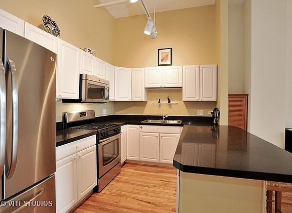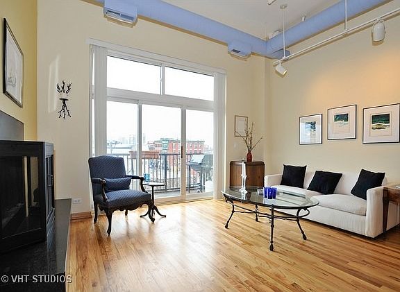 The world outside your door. Blue Line to airport, bus to Loop & Mag Mile, Zipcar rental or gated lot pkg to near expressway.Old factory w new mechanicals, 12ft ceilings, oak flrs, fireplace, granite & ss kitchen, w/d in unit, balcony, x-lrg storage. Secure bldg w sprinkler system, common roof deck, 2 elevators. 2 bdrms, 2 baths ~1200 SF. Pet-friendly, low HOA fees for River N, Bucktown & Wicker Prk. Ogden School