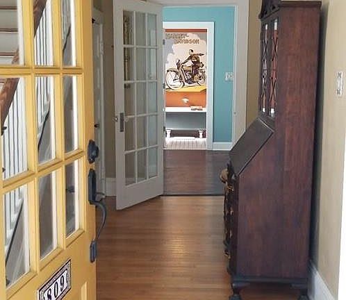 1921 Historic GEM that has been masterfully restored. This unique home is move-in ready. 3 large BR and 2.5 tiled Baths. Lovely front porch. Stained glass windows in several rooms, French doors,hardwood floors and restored antique light fixtures throughout. Kitchen is fully modernized with granite island and stainless appliances. Large sunny laundry room. Back deck and storage shed.High efficiency natural gas tankless water heater and new HVAC and gas furnace. Updated electric and plumbing as well as new windows throughout. Large detached workshop/garage.Fenced yard.Gorgeous and must be seen!