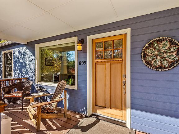 Midtown bungalow built in 1947 shines in all aspects. Remodeled extensively, the large chef's kitchen with butcher block island opens to living room with cozy wood-burning fireplace and dining room. Covered front porch and back deck. Fully landscaped, quarter-acre corner lot offers a peaceful sanctuary featuring fruit trees, flowers, and vegetable garden. Additional heated studio with loft in standalone 10X16' cottage. Single car garage with separate, heated workshop. Two driveways provide ample parking. Electrical wiring and panel replaced during remodel. Located a block from Juniper Park, close to Pilot Butte, shopping, schools, and the hospital. So many unique and beautiful elements in this well-loved home.