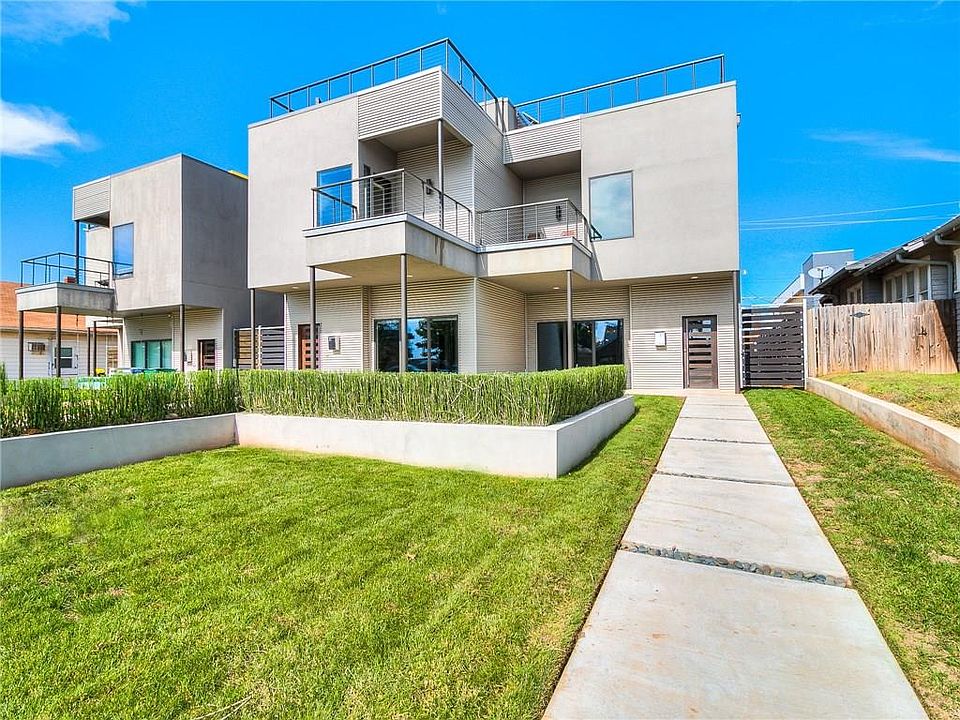 AMAZING SOSA townhome for someone looking to live in the city w/ BREATHTAKING views yet still have plenty of room to sprawl out. The 2,050 sq ft excludes the 800+ sq ft of outdoor balcony, patio & rooftop deck. First floor has living room, kitchen, dining, 1/2 bath, side yard and 2 car garage. The kitchen is white, bright & open w/ walk-in pantry, Bosch & Fisher & Paykel appliances, Delta touch faucet, refrigerator/freezer, and high gloss soft close custom cabinetry. Custom open stairs lead to master suite, 2nd bedroom, office (could be enclosed for a 3rd bedroom) and large deck on the 2nd level. Master bath has skylight, his/her sinks, free standing soaking tub, walk-in glass shower w/ rain head & body spray, walk-in closet, custom barn door & open deck. 2nd bed has lg partially covered balcony, full bath, walk-in closet. Office has 2 skylights. Exterior stairs off hallway leads you to the rooftop deck with spectacular VIEWS! Buyer to verify school district information.