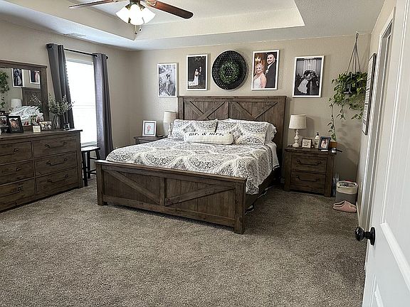 Spacious Home in a quiet neighborhood with open floor plan. Split bedrooms with Huge master suite. Big backyard. Granite counter tops throughout the house. Interior painted in 2022. Master Bathroom Remodel in 2023 & New Carpet & Ceiling Fans installed in rooms in 2024!! In-ground Storm Shelter in Garage! Wonderful location! Will go fast!
