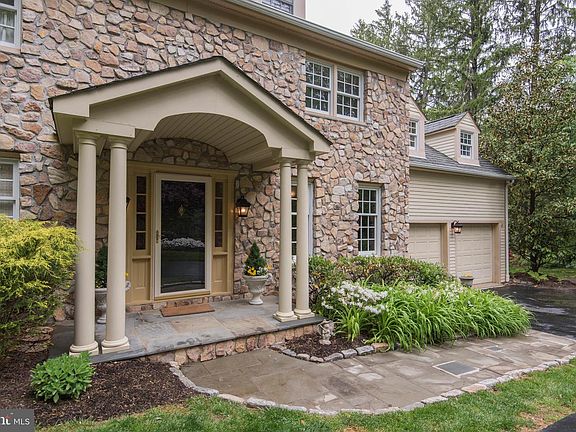 This impressive stone, center hall Colonial is unparalleled in both its interior and exterior detail. It is situated upon park-like grounds on close to an acrein the heart of Bryn Mawr. This 4 bedroom, 3.2 bath home offers a 1,200 sq ft addition that upgrades the space to include a master suite, main level study and a supplemental basement finished into extra living space. You will admire the many details including the hardwood floors, 5 fireplaces (4 gas) architecturally appealing custom mouldings and built-ins, and STUNNING light-filled views from every window. The main level library provides comfort and convenience with a gas fireplace and a granite topped wet bar with custom cherry cabinets. For the work at home professional, this home has a Minor Home Occupation Certificate of Occupancy with separate entrance .The Kitchen has an abundance of prep and storage space with WoodMode custom cabinetry, JenAir downdraft cook top stove, double GE Profile ovens with convection, microwave, Bosch dishwasher and an adjacent fireside Breakfast Room and mud room. The generously sized formal Living and Dining rooms provide dramatic entertaining spaces. Upstairs you will find an exceptional Master Bedroom featuring a cathedral ceiling, fireplace, sitting room with granite topped wet bar, Master bath with custom double bowl vanity, jetted soaking tub, large stall shower with rain head and bench and a walk-in closet with custom organizer. The Prince/Princess/Au Pair Suite features a private bath and sitting room. The two additional large bedrooms which share an updated bath both offer ample closet space. In the daylight, walkout Lower Level you will find lots of additional living space including an exercise room and recreation area with fireplace and a powder room. The lower level walks out to a wide rear terrace with prolific natural views of the fenced landscaped grounds. This property provides a 2 zone HVAC system, new 75 gallon hot water heater, walk up floored attic with attic fan and more. This property is a true sanctuary that you will enjoy for many years to come.