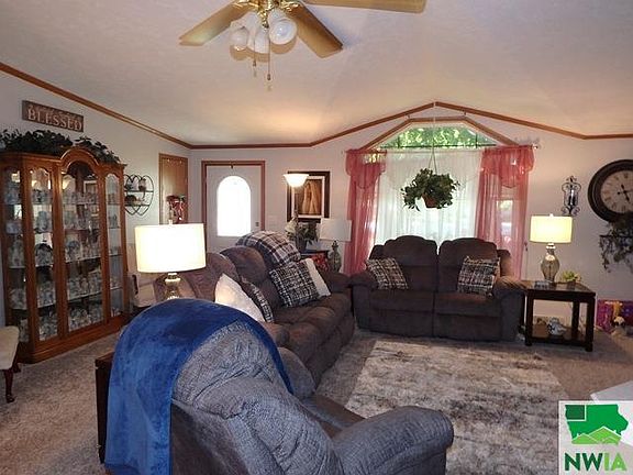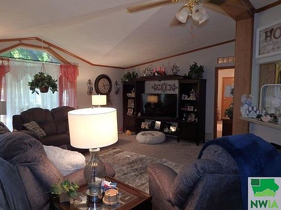 Amazing starter home located in Alton! with 3 bedrooms and 2 bathrooms this home includes the lot and fencing, no lot rent! Lots of space with this home both inside and out along with a great view overlooking the city park and swimming pool. Guys will love the large 2 stall garage. There is so much here to appreciate including with a great location overlooking the city park!