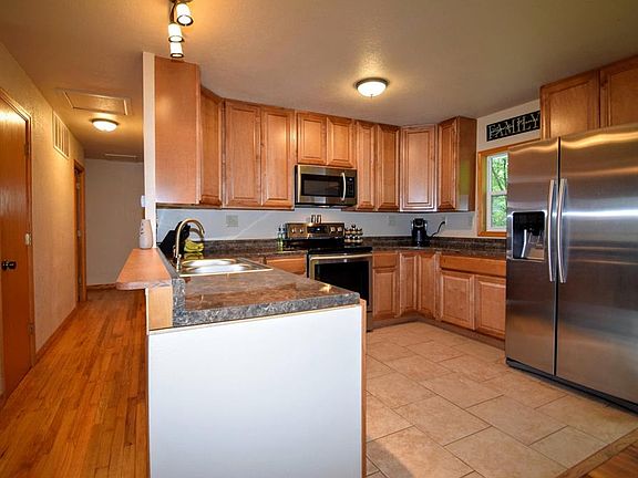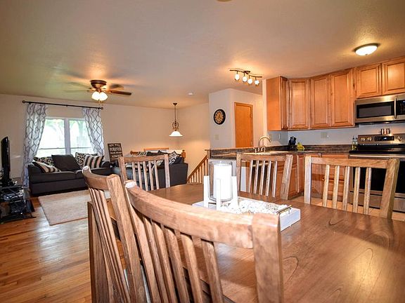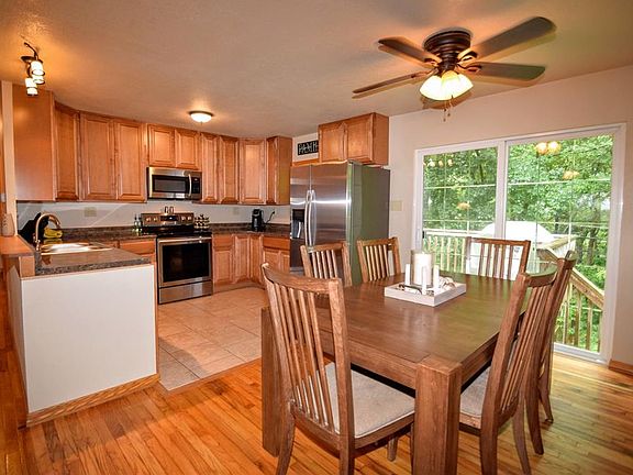 Consider this property as your new home. Very clean and warming interior colors for this 3 Bedroom with 2 Bathrooms with additional non-forming 4th bedroom with walk-in closet. 4th bedroom window is non egress size but could easily be modified to a larger window. Kitchen has a U shape layout including newer maple cabinets with lots of storage space. Kitchen floor is tiled. Kitchen design has a open viewing to the family and dining areas. Main level has hard floors including the entry staircase and front entrance landing. Main bathroom has a tiled surround/tile floor with raise vanity and linen. Lower level bathroom has a tiled shower. Lower level provides a large recreation room for entertaining. Walkout lower level to a great back yard with .563 acres and the backyard is wooded for privacy. Kitchen appliances are negotiable.