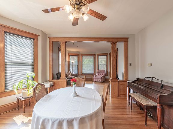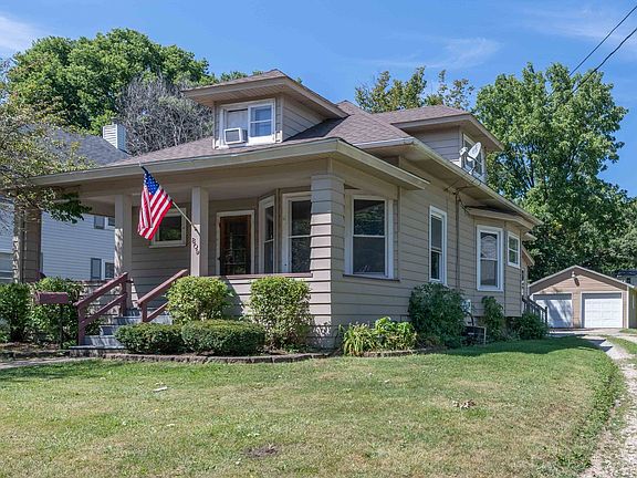 Charming three bedroom home in Aurora University area is ready and waiting for you. Enjoy a cup of coffee and a good book from the front porch, or play with the kids in the extra side lot (included), which could possibly be used for a swimming pool, shed, or a third and fourth garage. Beautiful woodwork and hardwood floors invite you into the dining room and living room. The dining room features two beautiful lead glass windows and an original built-in hutch. The office/possible fourth bedroom is located off of the living room. The second floor features two generously sized bedrooms, one with a walk-in closet, and a loft/extra storage area. Lincoln Park is right around the corner. Within walking distance to Holy Angels, AU, Prisco's Family Market, Spartan House Restaurant, dry cleaners and more. Welcome Home!!