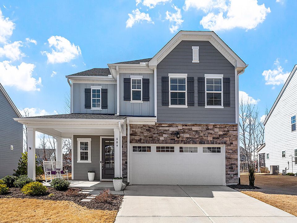 Why wait for new construction when you can move right in? Welcome home to this stunning 4 bedroom ''smart'' house in the already established community of Tryon. Built in just 2021, enjoy the convenience of an open floor plan with ample space for entertaining guests or work from home. Complete with a chef's dream gourmet kitchen featuring quartz countertops, stainless steel farmhouse sink, soft-close cabinets, and gas range. Huge walk-in pantry plus mudroom/drop zone! Cozy up by the fireplace in the living room or unwind on the screened-in porch overlooking the spacious yard. Guest bedroom on the main floor. Upstairs you'll find 3 additional bedrooms plus a large loft area. The owner's retreat is your own getaway, including a trey ceiling, his & hers vanities, tub, walk-in shower and HUGE walk-in closet. Laundry room with cabinet storage above. Located in a fantastic neighborhood with amenities including a pool, clubhouse, parks, and playground. Easy access to Wake Forest reservoir boat dock, downtown Wake Forest, Falls Lake, and all that Raleigh has to offer. This home offers versatility, convenience, and space for all your needs.