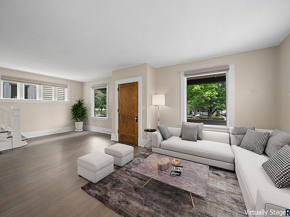 Throughout the main and upper levels, you’ll appreciate the original hardwood floors that add warmth and character to the home. The stunning split staircase enhances the flow of the layout while providing an elegant focal point.