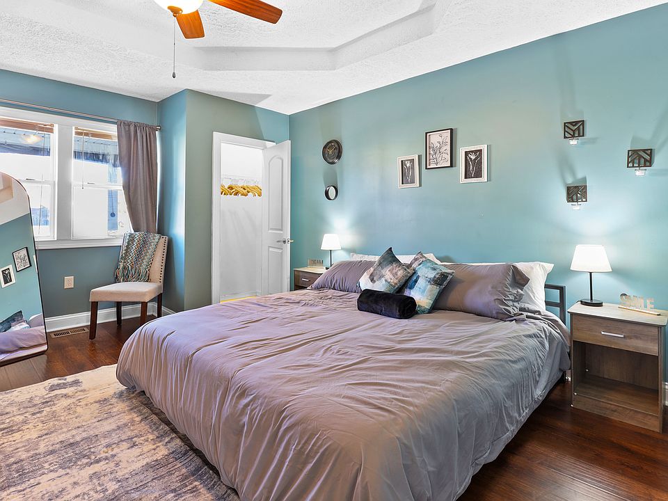 Two-car attached garageIn-unit laundryDedicated workspaceHigh-speed wi-fiSmart tvsFully equipped kitchenLarge fenced-in backyard