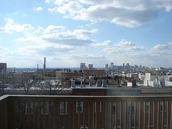 2 bedroom, 2 full bathrooms and 1 half bath rehabbed townhouse. Separate living room and dining room, with exposed brick. Half bath on main level, and den/office space off kitchen. Kitchen with breakfast bar, ceramic tile back splash, appliances including dishwasher, built-in microwave above gas range, refrigerator, and garbage disposal. Pinewood floors in main level, wall-to-wall carpet in bedrooms, and ceramic tile in bathrooms. Central air conditioning and ceiling fans throughout. Privacy fenced backyard, and unfinished basement for storage. Hall bathroom with ceramic tile shower stall with seat. Front bedroom with exposed brick, and bathroom with Jacuzzi tub. Third floor with full wet bar including full size refrigerator, and access to rooftop deck with city skyline views. AVAILABLE MID-SEPTEMBER. $2300/month + utilities. #CantonManagement