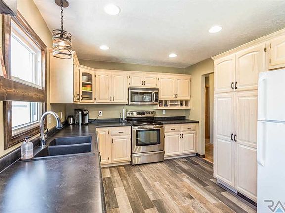 Quaint 1.5 story home with newly remodeled kitchen, newer roof, windows and shed. Three bedrooms with two bath home. Upper floor perfect for a master suite. Room to entertain in the lower level with built in bar! Move right in and call this home! All appliances stay including washer and dryer.